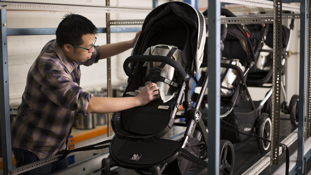 CHOICE expert Matthew testing strollers and prams in our labs.