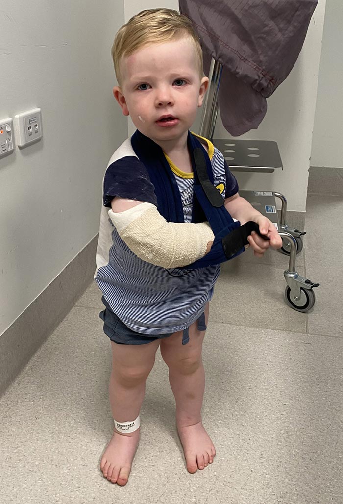 Saxon’s arm was in pretty bad shape and the doctors in the emergency department said it was hardly the first time they’d handled a toddler board accident.
