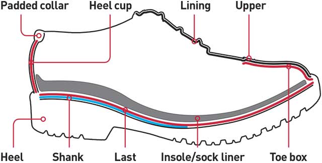 • Shoe laces, buckles and Velcro are all equally good, but avoid slip-on shoes that can’t be adjusted.
