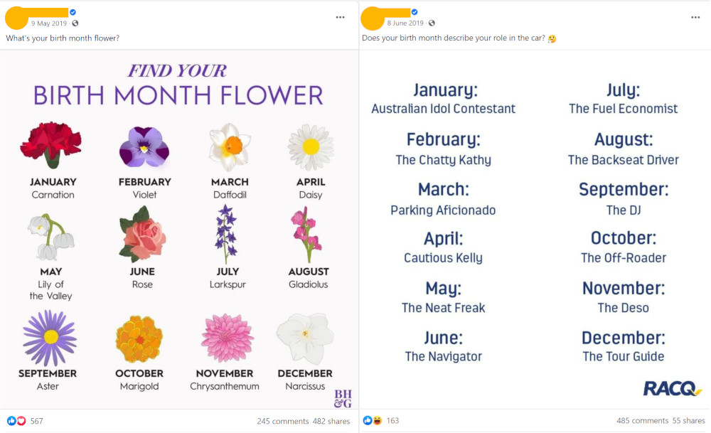 Quizzes and question posts on social media can give away important personal information