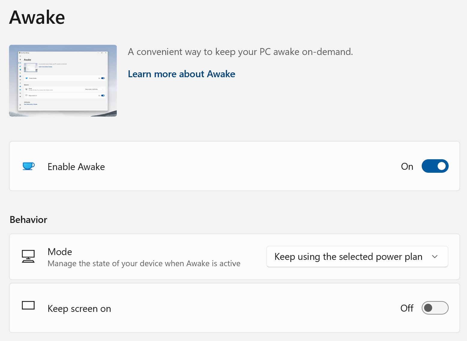 Awake lets you override the sleep settings for your display. But given you can also do most of the same things from within the Windows settings menu, it’s not one of the more useful PowerToys tools.