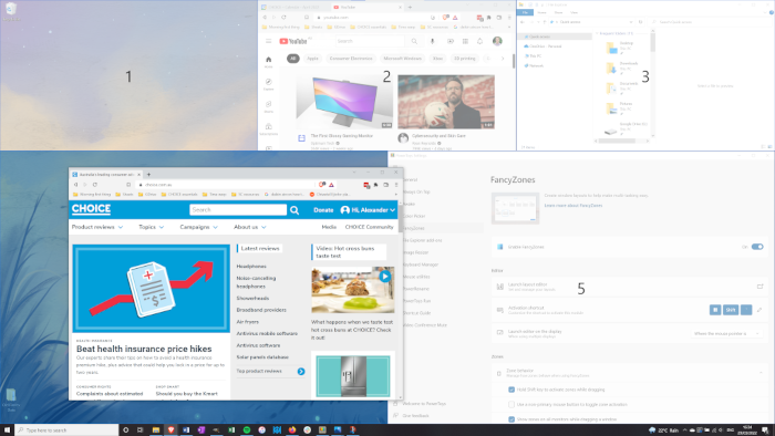 FancyZones is possibly the most popular feature of PowerToys. It lets you customise your own snap-to window arrangements beyond the standard left/right or corner placement that Windows 10 and 11 use by default, as well as how snapping works.