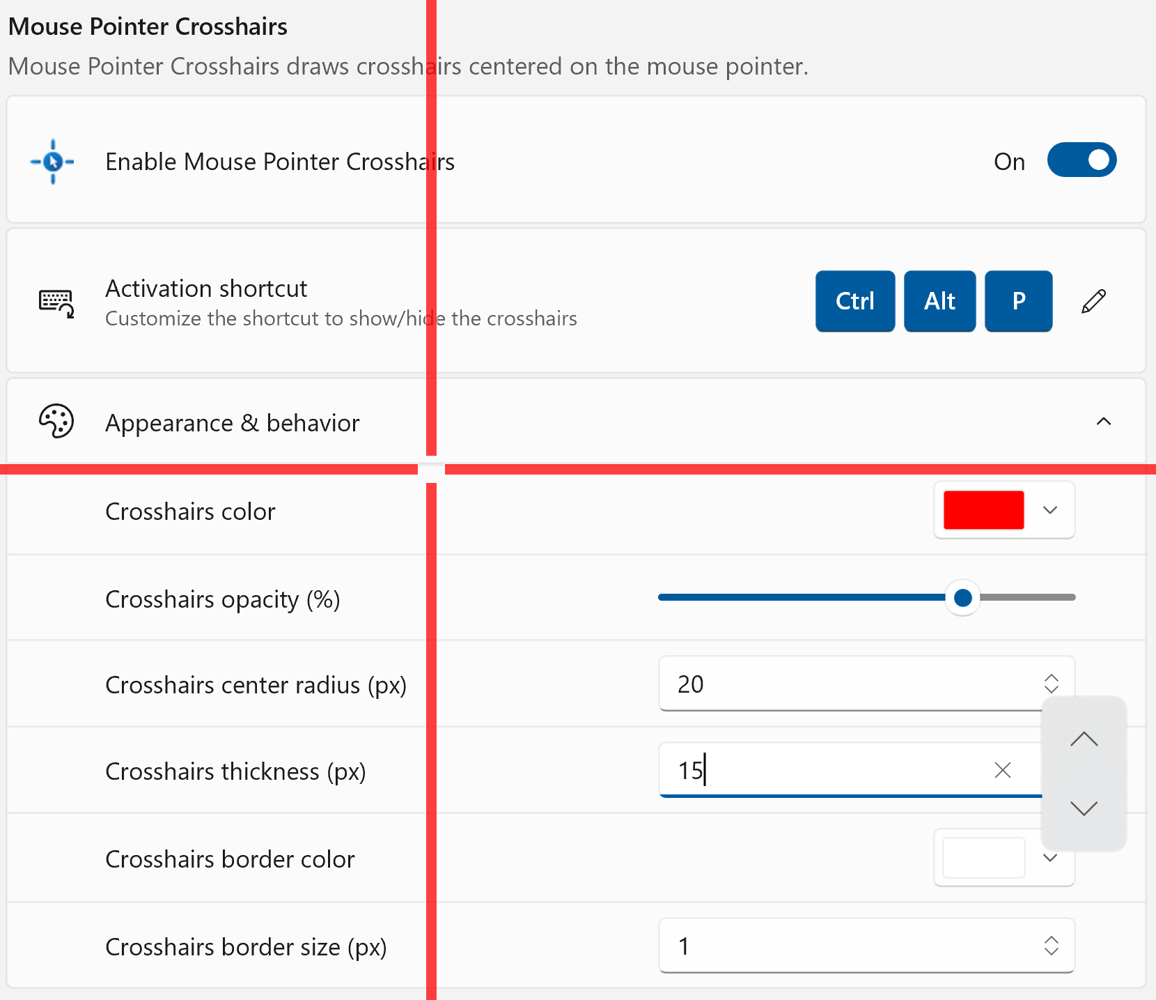 Mouse Pointer Crosshairs creates screen-spanning vertical and horizontal lines, centred on your cursor. The thickness, colour, opacity and borders can all be adjusted. Unfortunately, the crosshair doesn’t follow the cursor when using Windows’ built-in screenshot feature, which would make it much more useful. Toggle the crosshair on and off via Ctrl + Alt + P.