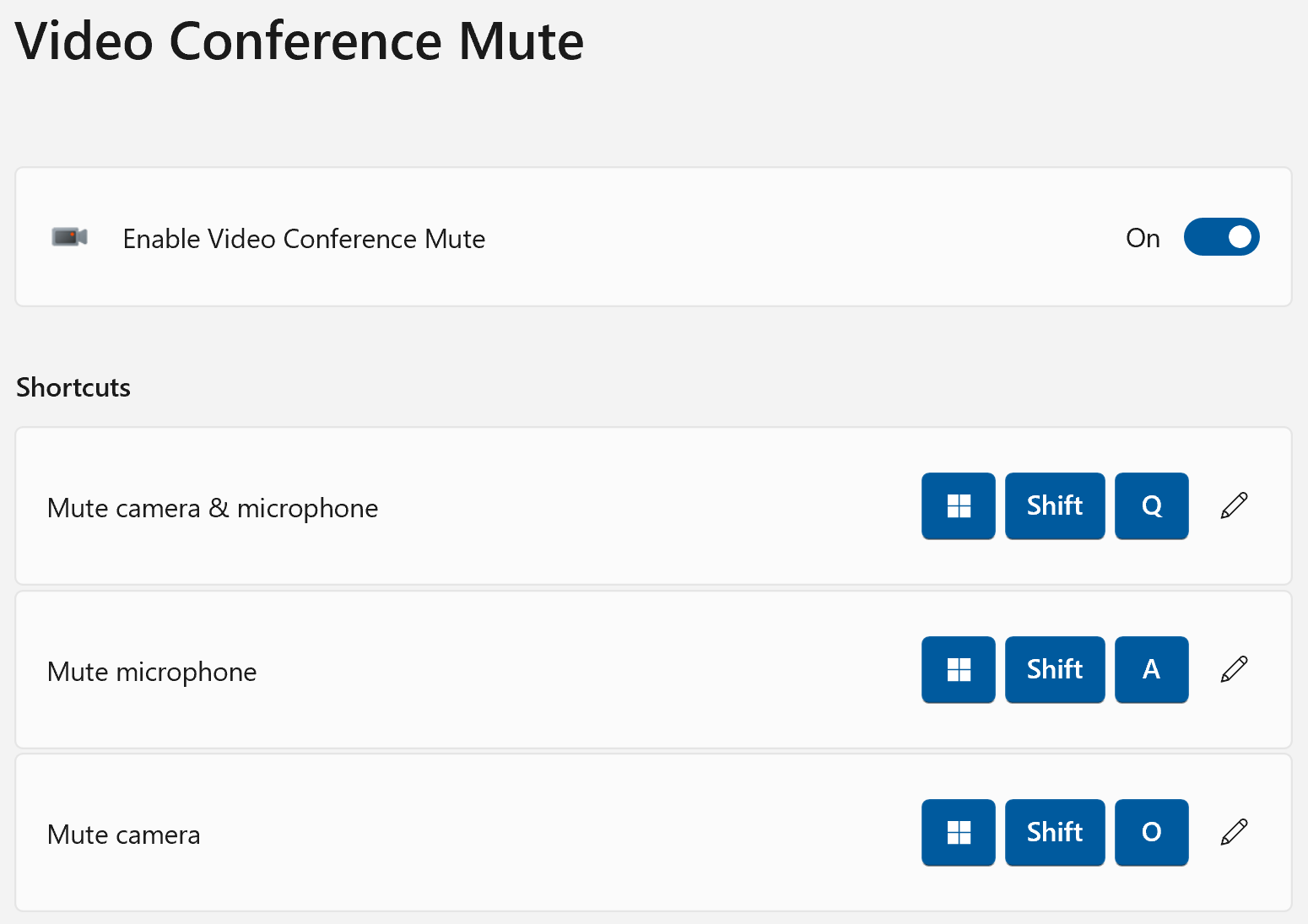 This tool creates global shortcuts for muting and unmuting your camera, microphone or both. In this instance, “muting” your camera means turning off the video feed.