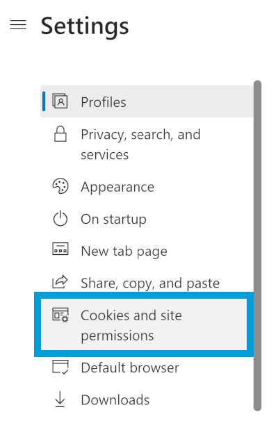 In the top left of the new screens, click on the three horizontal lines, then select Cookies and site permissions