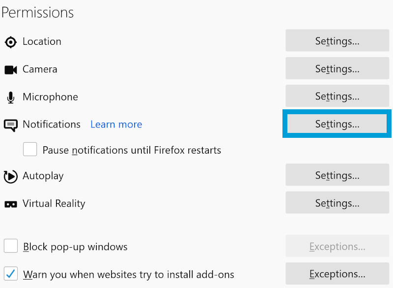 To disable all notification requests, tick Block new requests asking to allow notifications at the bottom of the pop-up window and then Save Changes.