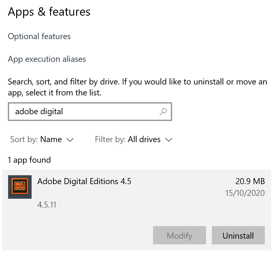 In the search box of the new page, type the name of the app. Select it and click Uninstall.