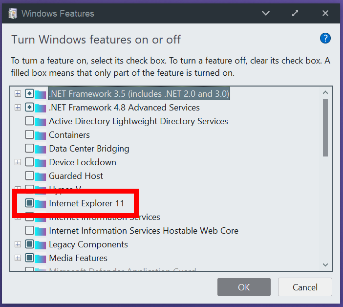 But removing Internet Explorer isn’t as simple as a regular program uninstall. It’s quite spread out across your system, so you need to disable it from within Windows settings then restart your computer.