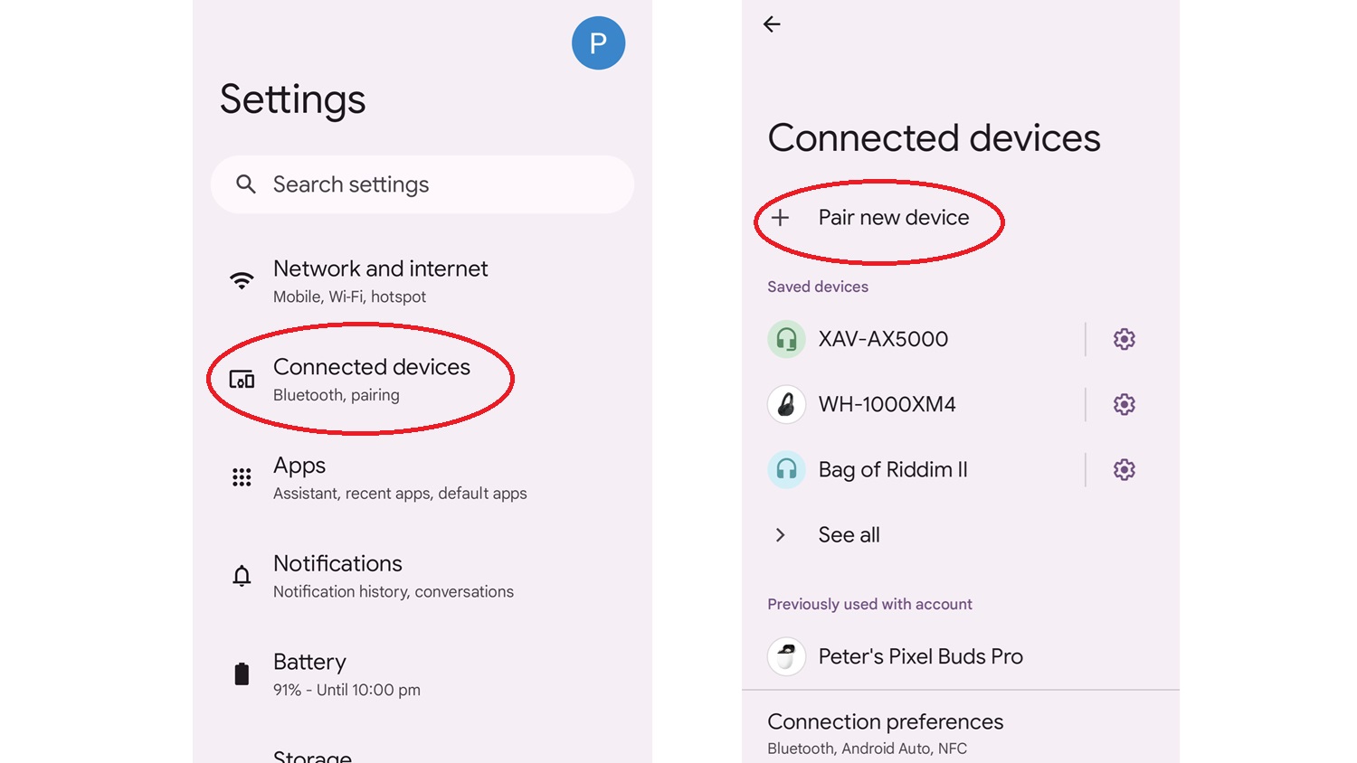 When your printer is scanning for Bluetooth devices, tap “Pair new device” to add it to your phone. Once added, it will appear in the list of previously connected devices.