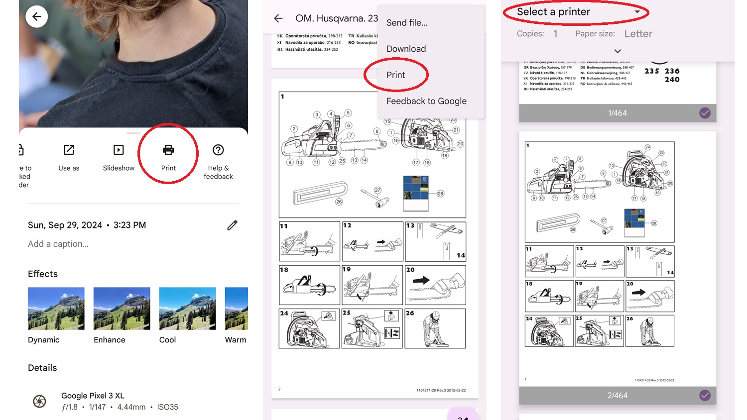 How to print images and documents on an Android device.These are the standard print screens. Tap the icon when you’re ready to print.
