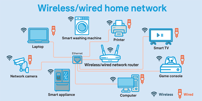 Wi-Fi: Almost any new network-capable device can connect to Wi-Fi, though there are some exceptions, particularly if you’re using very old office equipment like printers. Many modern appliances will only connect to a wireless network, including control devices such as your smartphone or tablet. This is the most practical solution as it doesn’t require physical fitting throughout the house, though it does have some drawbacks. Wi-Fi can drop out and the bandwidth tends to sit below Ethernet, so you may have trouble streaming high quality audio or video, and connections may sever from time to time.