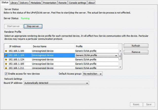 There’s no need to choose devices for playback from the list in the console, unlike Serviio.