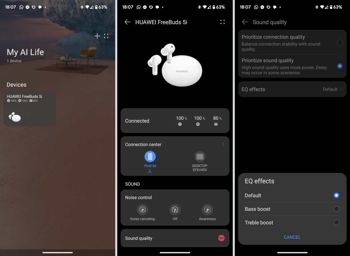 Perhaps that’s why the FreeBuds 5i feel like a breath of fresh air in this regard. You can be connected (not just paired) to two devices at once.