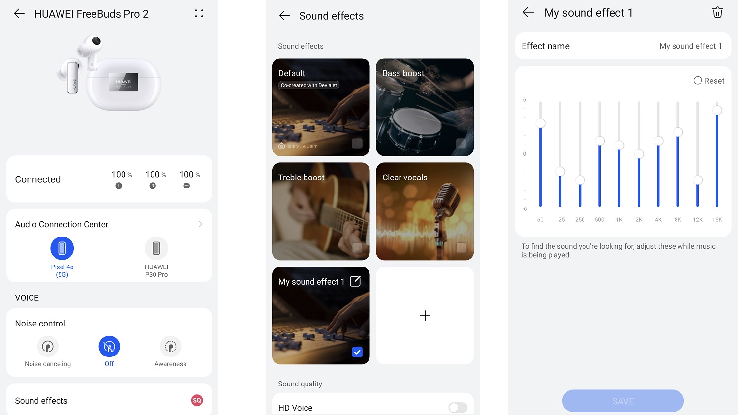 Huawei’s AI Life app is basically a central hub for all their products. When connected to the headphones, it lets you adjust noise cancellation, audio equalisation, controls (aka gestures) and other simple settings. It also lists all the previously connected devices so you can easily switch between them.
