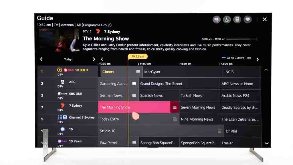 Menus and apps such as YouTube, Netflix, Stan and iView are accessed from the bottom of the screen, using a combination of remote keys and an ‘air mouse’ – you wave the remote around to move a pointer on the screen.