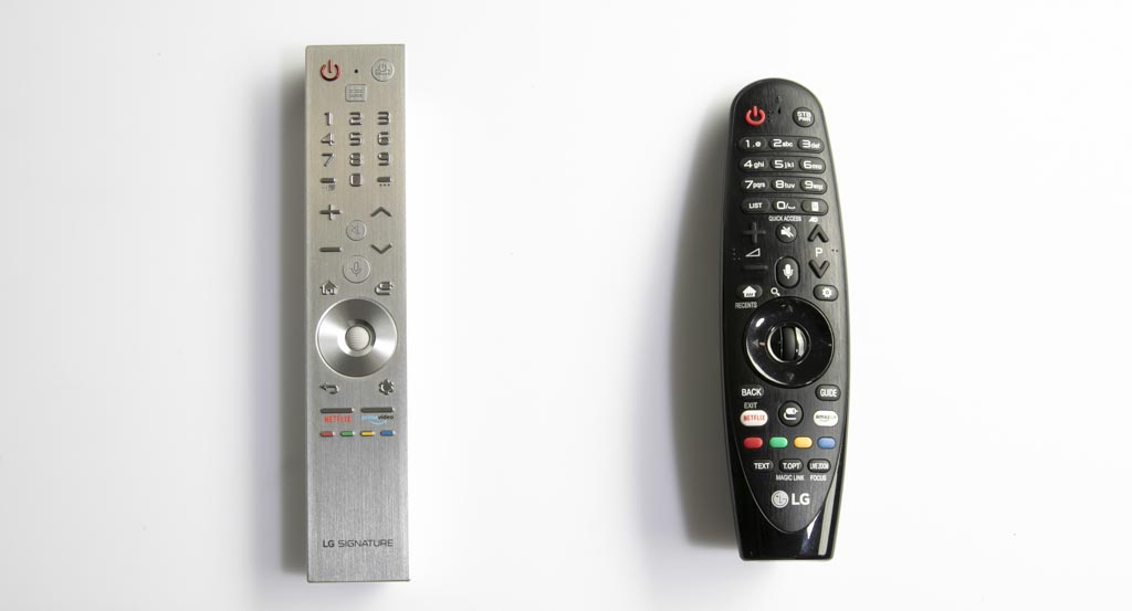 The bright, shiny remote looks fantastic, but for ease of use and general comfort, we still prefer the standard black plastic LG remote.