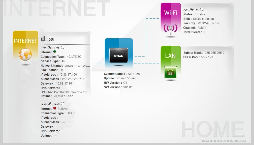 The D-Link DWR-956 solution requires you to find your own 4G data SIM and pay for a separate plan. A monthly data plan can start from $15 a month for 20GB and go up to $60 for 120GB a month.