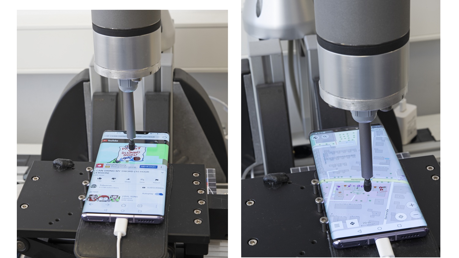 Different testers also describe their ergonomic impressions of the touchscreen when swiping with their fingers, using multitouch gestures (zoom with 2 fingers), kinetic scrolling, swipe writing (if possible), copy and paste functions and, if possible, using the supplied pen. In case of buttons or keypads the lab experts evaluate these solutions as well.