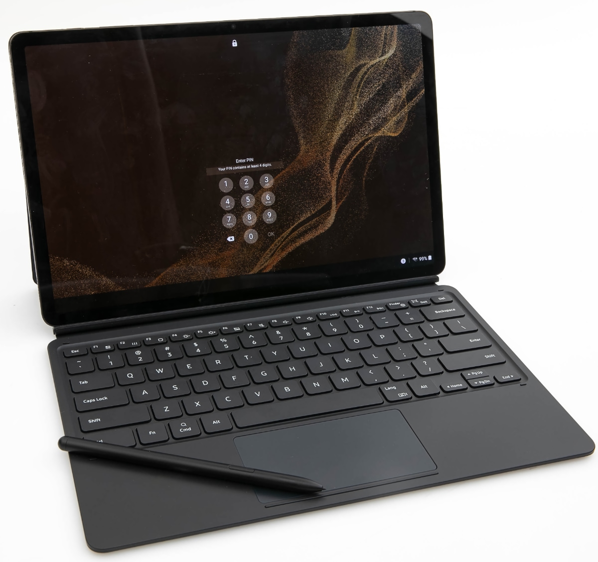 With the official Samsung Book Cover Keyboard in place the Galaxy Tab S8+ works well as a notebook.