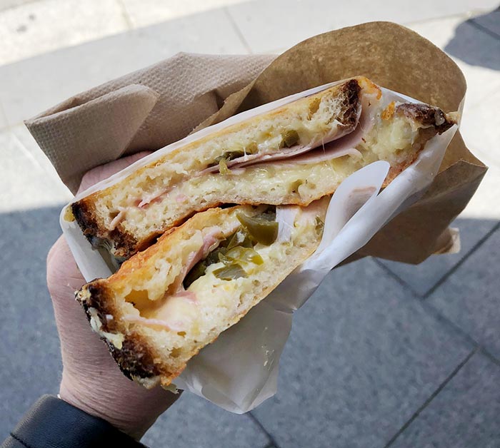 A cheese, ham and jalapeno toastie from Penny’s Cheese Shop in Sydney’s Potts Point.