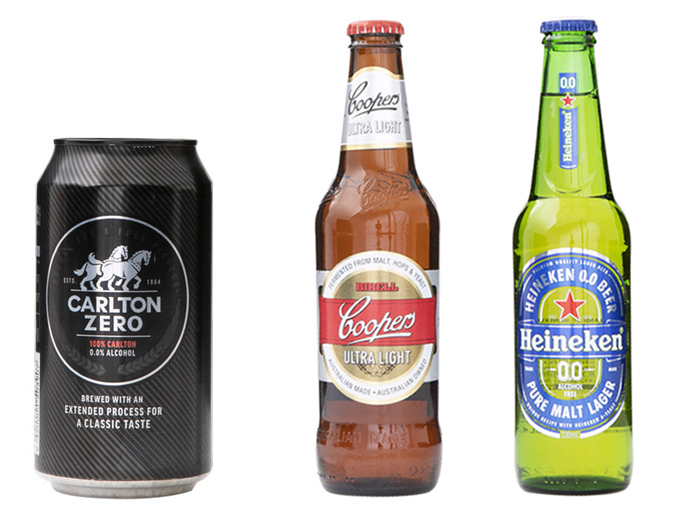 Carlton Zero, Coopers Ultra Light Birell and Heineken 0.0.