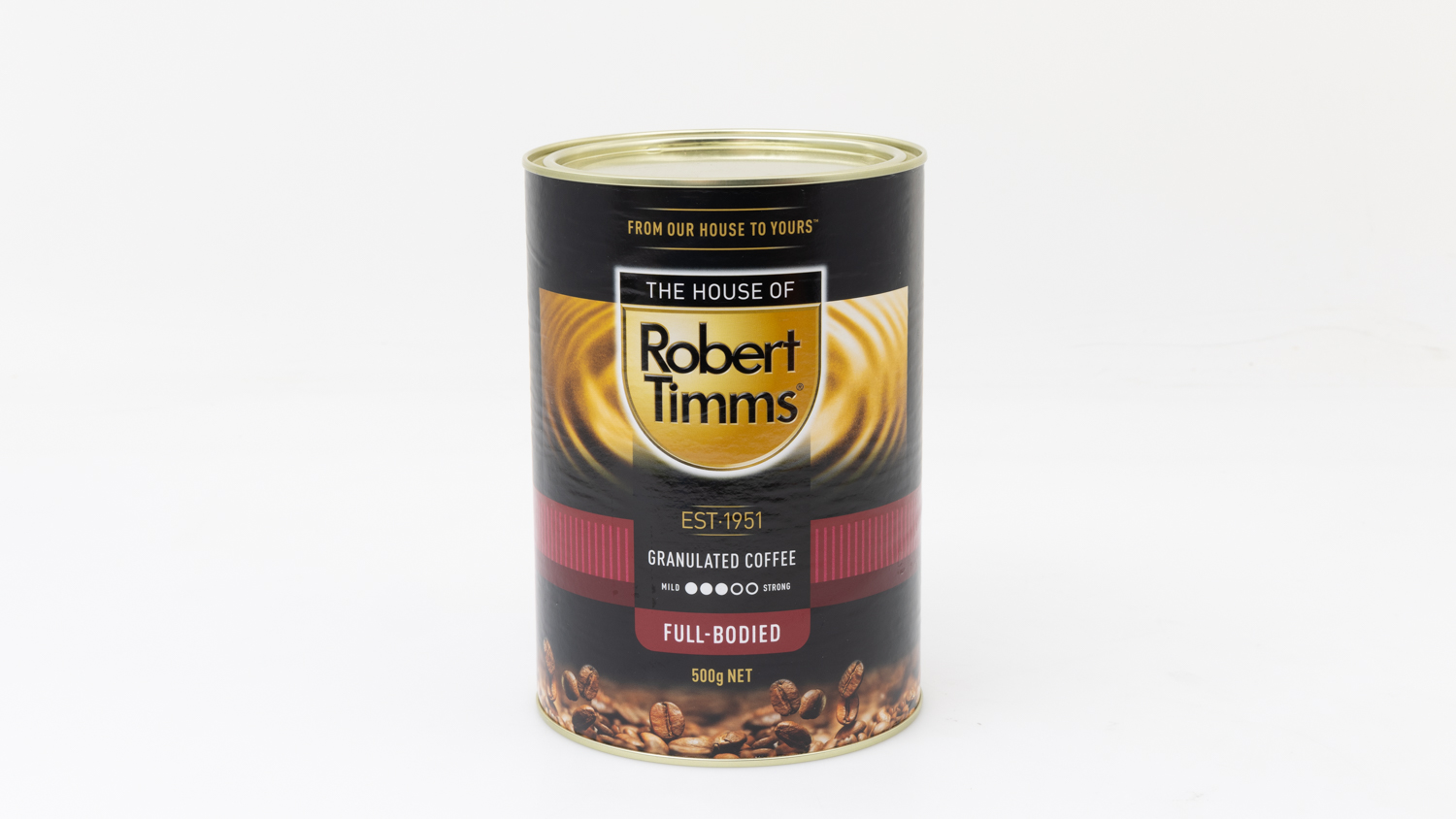 Robert Timms Full-Bodied Granulated Coffee, score 81%, price per 100 grams $4.