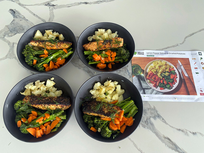 We cooked the Lemon pepper salmon and crushed potatoes recipe from HelloFresh.