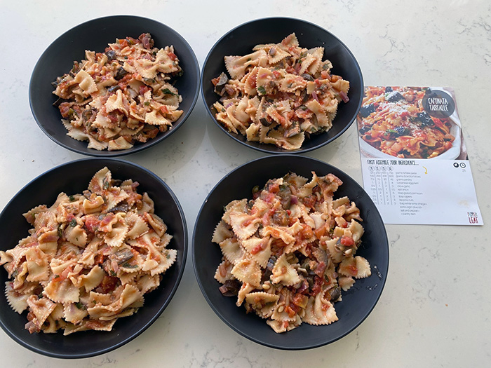 We cooked the Caponata Farfalle recipe from PepperLeaf.