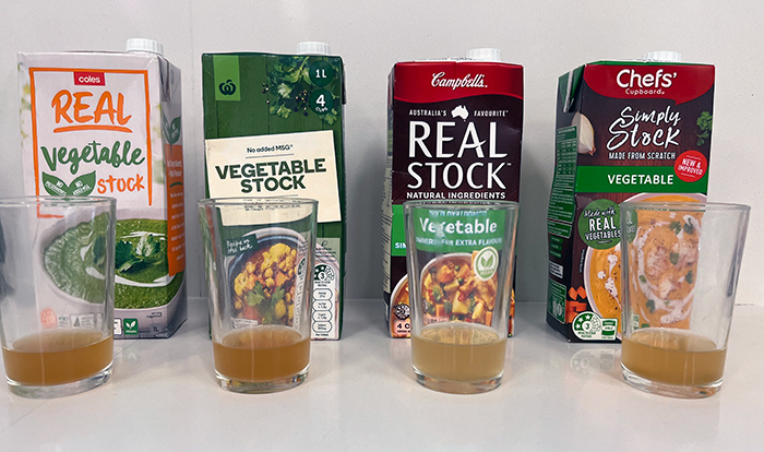 The vegetable stocks from Coles and Woolies had similar ingredients and nutritional values; while the Aldi and Campbell’s products were similar to each other.