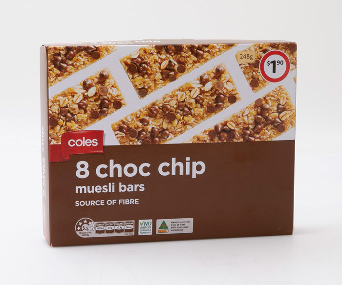 Coles Choc Chip Muesli Bars (71% – also one of the three cheapest products in the test)