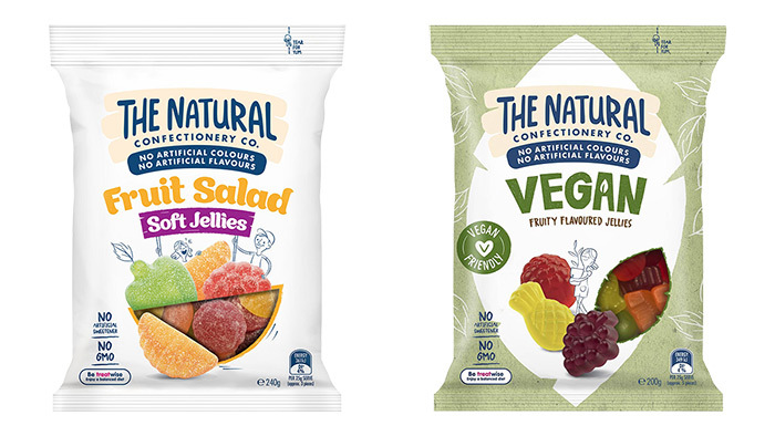 The Natural Confectionery Co. Fruit Salad Soft Jellies cost $1.67 per 100g, whereas the vegan alternative costs $2 per 100g.