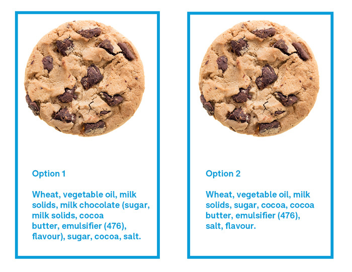 Two options for labelling the same chocolate chip cookie. Which one would you choose?