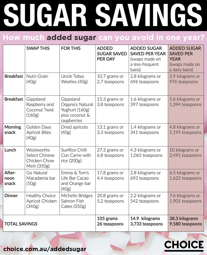 Sugar savings from simple food swaps