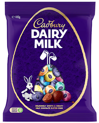Cadbury Dairy Milk $16 per pack Pack size: 440g Unit price: $3.64/100g Egg size: 8g Made in Australia