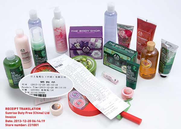 • CHOICE purchased The Body Shop products in Chinese international airports.