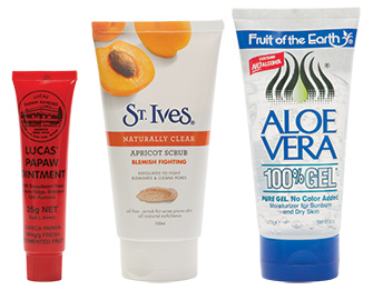 Lucas’ Papaw Ointment is mostly petroleum jelly, and only around 4% pawpaw. St Ives Apricot Scrub: containing, last AND least, apricot extract. Fruit of the Earth Aloe Vera is 100% Gel – but not 100% Aloe Vera gel. It also contains ingredients prohibited in natural standards – and even in some countries!