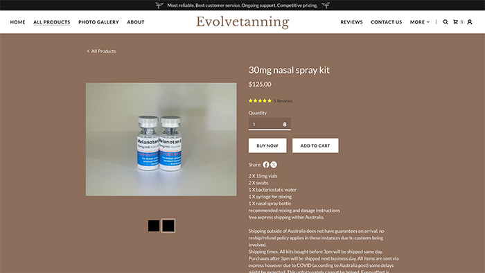 Evolve Tanning and Melbourne Melanopeptides did not respond to our requests for a comment.