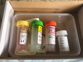 I bought my i-Screen Microbiome Check online and received the test in the post a few days later. Inside were four plastic test tubes with different coloured lids – one containing preserving liquid, along with a thin latex glove, a small plastic scoop, a set of directions and a prepaid return envelope.