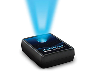 How it works: NightWave projects a blue light (but apparently not strong enough to affect melatonin – see Blue light blockers) on your ceiling which pulses on and off. You breathe in and out in time with the light, which gradually slows down.