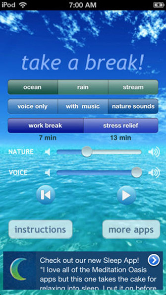 The test: Five people tried this app, listening to the 13-minute stress relief program. They could include the background nature sounds or music if they wished.