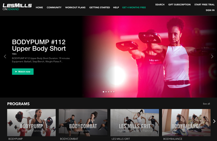 Gym members may already know about Les Mills classes, such as Body Pump (weightlifting), Body Attack (high energy fitness), RPM (indoor cycling) and Body Balance (yoga-inspired workouts). They’re also available at Les Mills On Demand, with a free trial period, after which it’s $24.99 per month. Check with your gym – it may have arranged a better deal for members during the COVID-19 closures. You’ll need equipment for some classes.