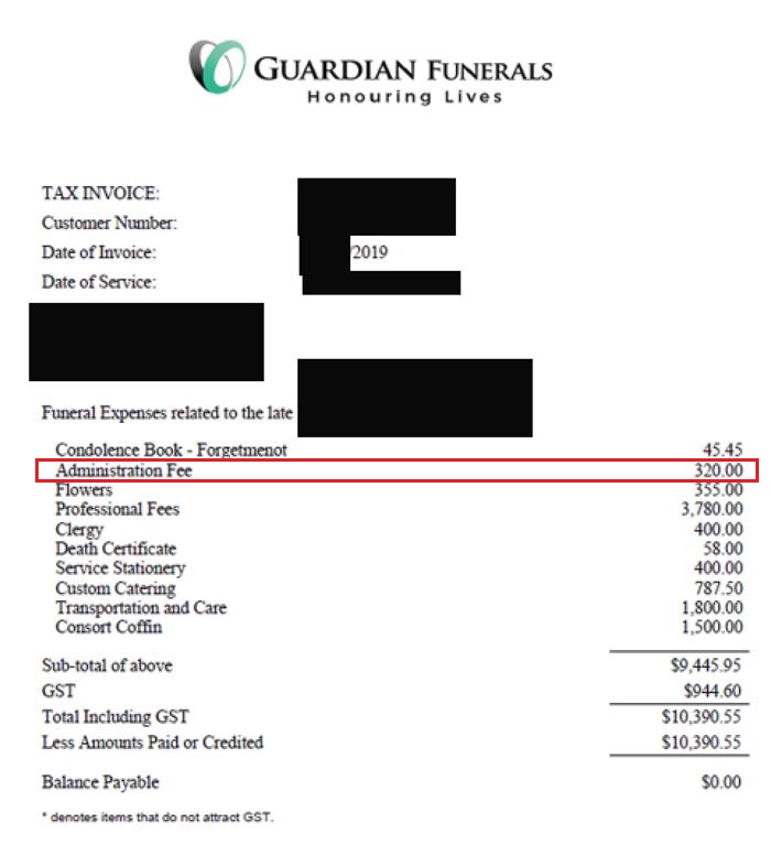 They pointed out the $352 fee ($320+GST) would in some cases cost more than flowers, clergy and other items on a funeral invoice, “but the customer gets nothing for it. If it was a genuine late fee, $352 is out of line of any reasonable or justifiable cost. It is a complete gouge of customers”.