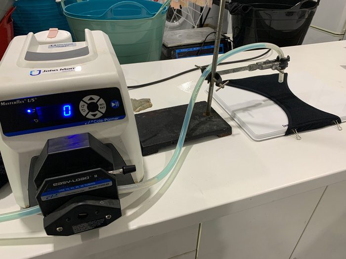 Using this special dosing apparatus, each pair was assessed for its absorbency speed.