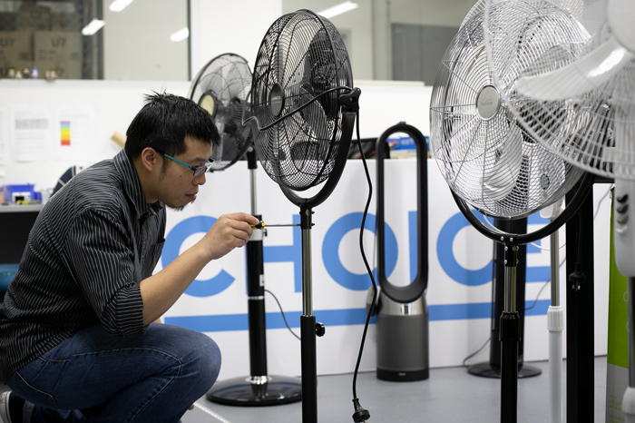 CHOICE tester Matthew Tung puts pedestal fans through their paces in our labs.