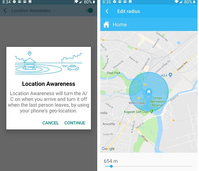 If you don’t follow a set schedule, then the ‘Geofencing’ feature can be a useful way to ensure that you enter a welcoming cool home after a day out, regardless of the time. The air conditioner will automatically turn on when it senses that you, or more accurately your smartphone, is close to home. You can set the parameters from 100 metres to several kilometres.