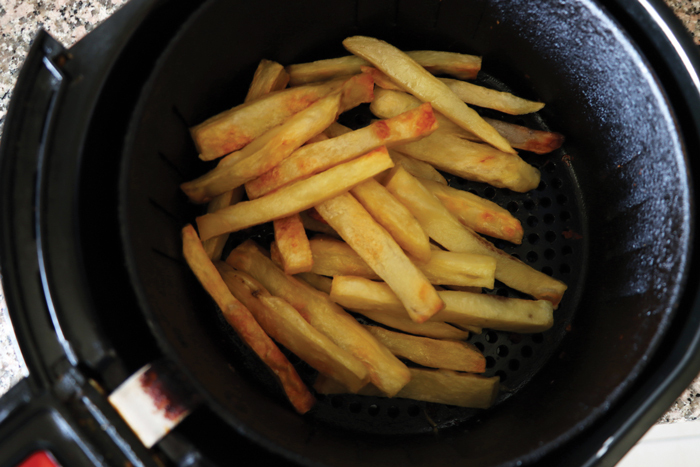 Prevention is often the best measure, so Fiona suggests adding a little water to the base of the drawer to stop the fat from smoking, which will cut down on cleaning later. You can also add a mixture of vinegar and lemon juice to the basket and run the fryer for a few minutes to get rid of any smells.