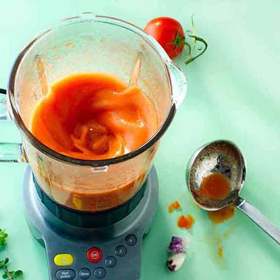Just add all your leftover roasted veg to the food processor, pour in stock and any other seasonings you like – fresh or dried herbs or chilli – and blend until smooth. Add cream if you like, or bulk it out further with tinned pulses or legumes.