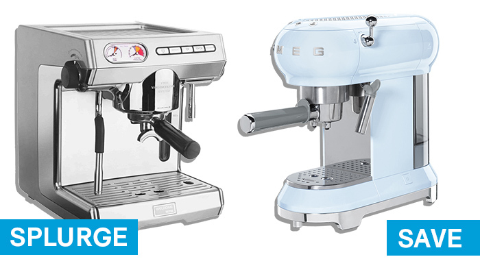 Although the Smeg delivers an equally satisfying brew, the Sunbeam does boast more features for coffee buffs. It has twin thermoblock heating (so you can make coffee and froth milk at the same time), a much larger water tank (three litres to one litre), coffee and milk gauges, and a commercial-size filter basket (the Smeg one is smaller and fiddly).