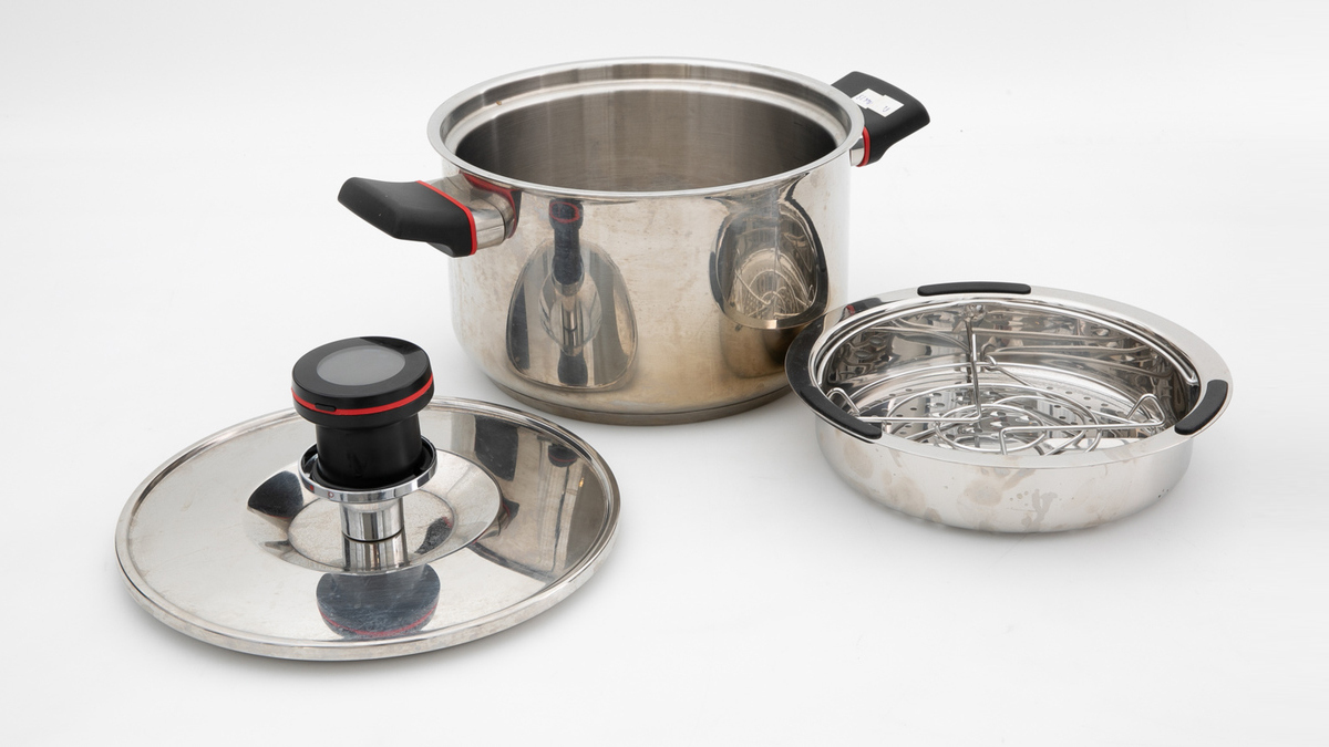 First, you’ll need to download the Zega app to use this piece of cookware. The SmartControl knob with digital thermometer then locks into the lid of the pot to control the process. It’s Bluetooth-compatible so you’ll need to sync the app to the SmartControl.