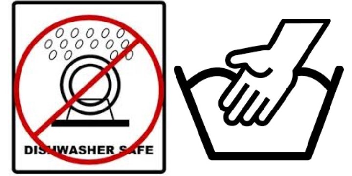 Some manufacturers will be considerate enough to stamp their products with symbols warning you that they aren’t dishwasher safe.